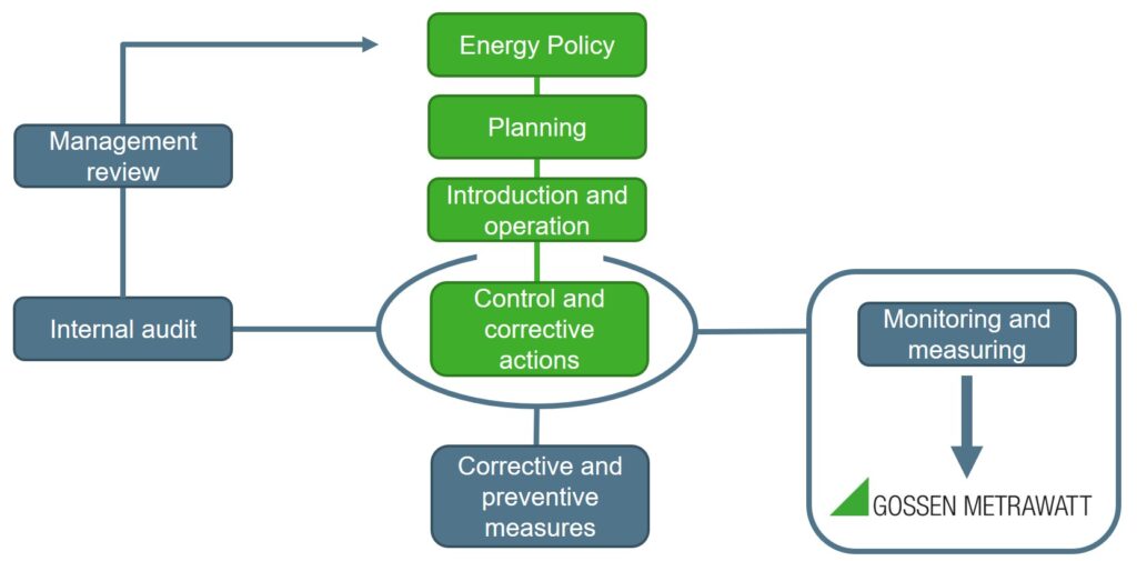 Greater emphasis is also placed on continuously improving the company’s energy balance. Measurements and monitoring activities serve to substantiate the implemented measures. It may also be necessary to develop a measuring concept already during the EnMS planning phase. Furthermore, opportunities and risks which might influence an energy management system should also be taken into consideration. The company must implement measures targeted at taking advantage of opportunities and averting risks.