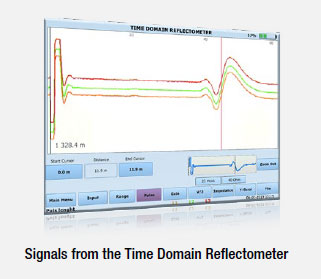 A TDR measuring instrument, for example the METRACABLE TDR, emits an electrical pulse and then calculates cable lengths or fault locations based on how much time elapses before the pulse returns to the transmitter. A wide variety of faults can also be identified by analyzing the various waveforms.