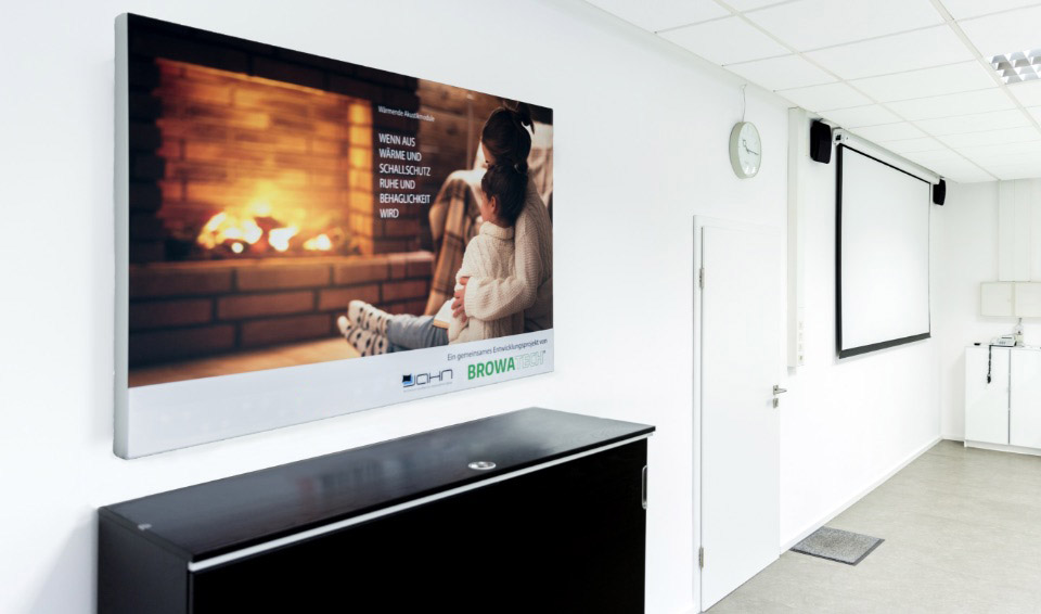 And thus Browatech’s heating textile has a special structure which offers specific advantages. For example, the textile can reduce heating costs by up to 94%. It provides CO2-neutral heating. It’s 100% recyclable. It can be produced and used in large sizes (well beyond the usual 0.5 square meters). Hotspots are excluded even with partial damage. It can be adapted to customer requirements in terms of volts, amperes, watts/m², radiation temperatures of up to 150° C etc., and it eliminates the need for hydronic radiators because it can be installed directly into furnishings such as tabletops, door or cabinet panels, partitions, walls, paintings, floors and carpets, as well as behind mirrors and paintings.