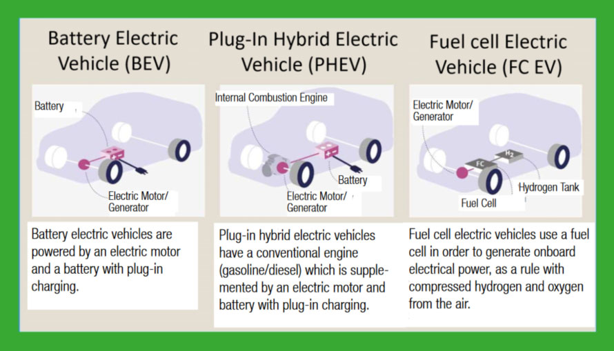Differentiation is made amongst battery electric vehicles (BEVs), hybrid electric vehicles (HEVs) and plug-in hybrid electric vehicles (PHEVs).