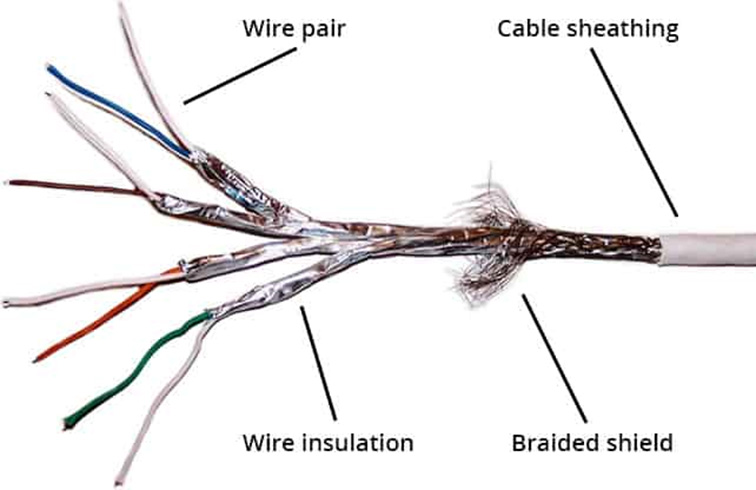 Fig. 4: Network cable with overall shielding and wire pair shielding