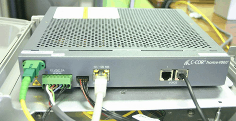 The connection between the incoming fibre optic cable and the continuing copper cable is made by a so-called optical network unit (ONU), which is located in a multifunctional cabinet of the network operator. Here the signals are converted for transmission to the subscriber on the existing copper line.